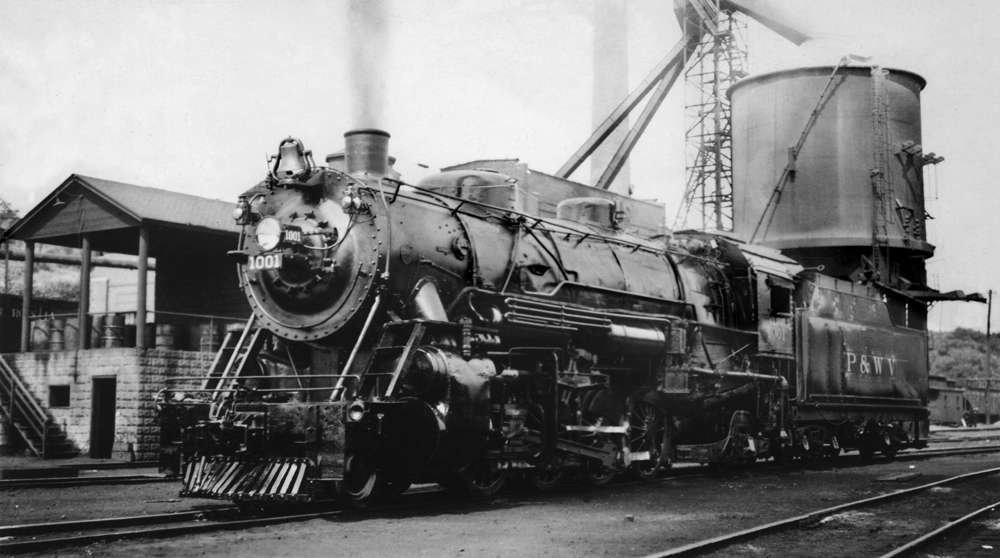 P&WV 1001 Light-Mike 2-8-2 at Rook, PA is on the ready track for a westbound run. As of yet there were no logos on the P&WVs tenders. Logos did not appear until 1940. Photo Circa 1936.